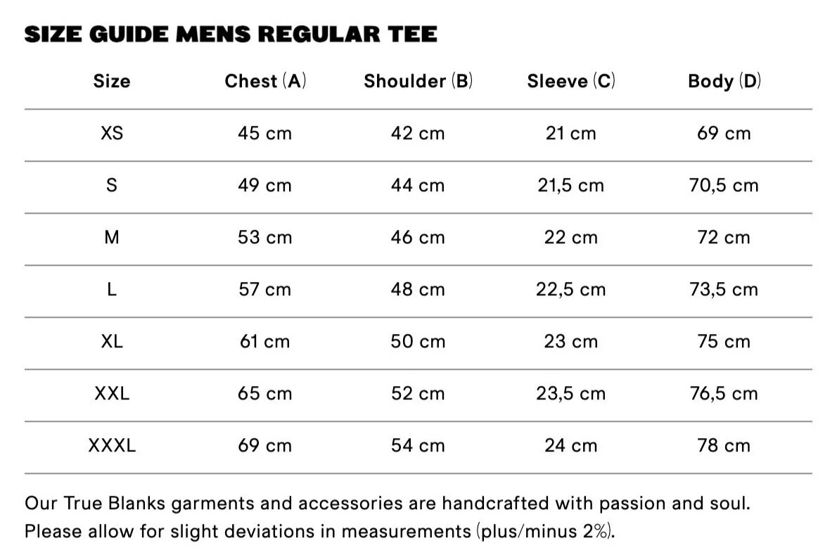 T-shirten har kedjesydda, förstärkta axelsömmar med invändig tejp i halsen för extra hållbarhet. Den är sydd med både enkel- och dubbelstickningar, och halsringningen är avslutad med enkel nålsöm för en ren finish. Ärmavsluten har en dubbelstickad fåll.