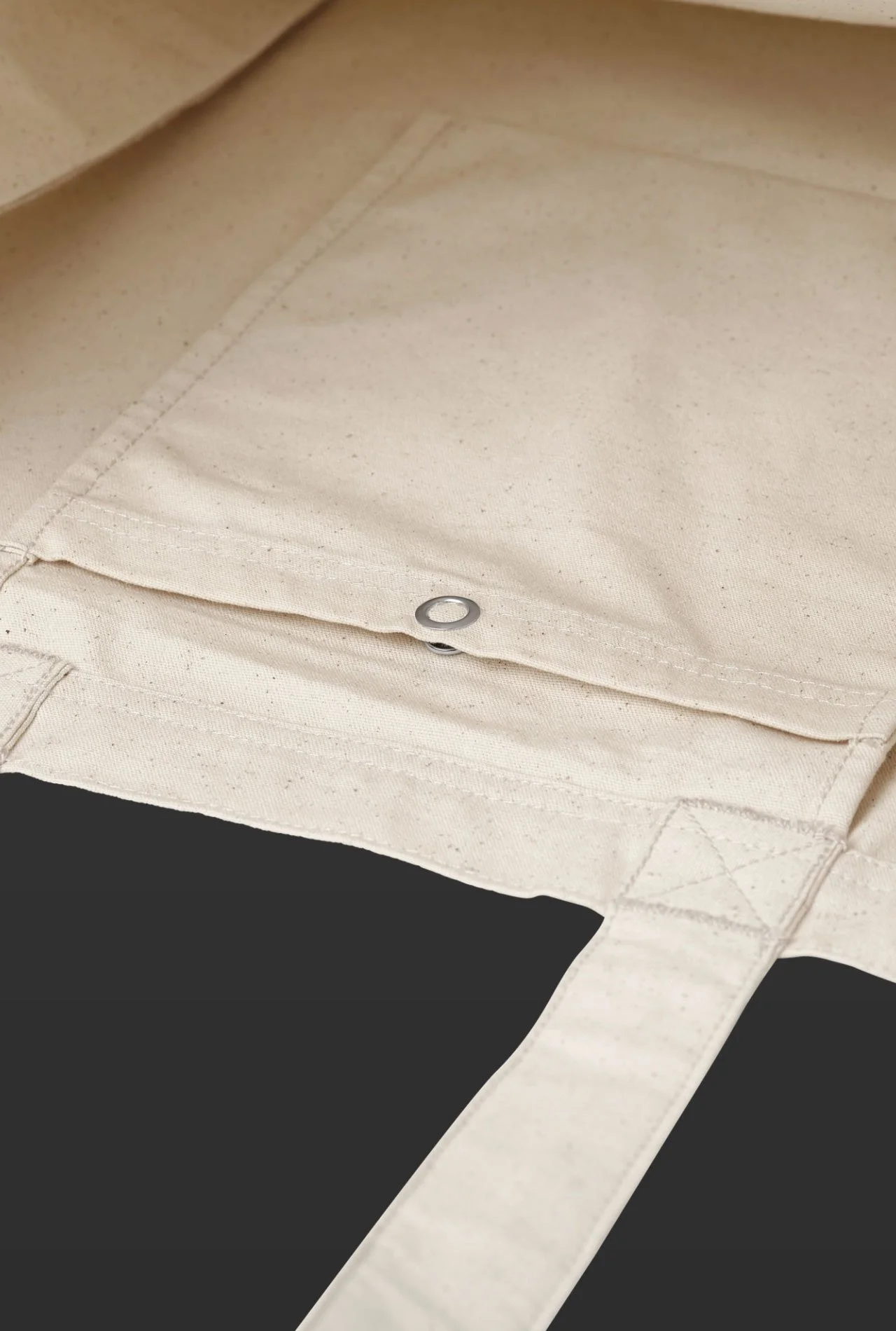En klassisk, ofodrad toteväska i kraftig bomullscanvas med två breda handtag. Öppen upptill med tvillingnålssöm, enkelnålssöm, förstärkta sömmar och slitstarka bartacks vid handtagen. Enkel att bära över axeln eller i handen. Väskan har en strukturerad, något kantig form – designad för att hålla.